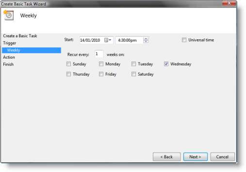 Quindi facciamo clic sul file Il prossimo e viene chiesto con quale frequenza si desidera eseguire il backup. Ovviamente la scelta fatta a questo punto spetta a te (o al tuo reparto IT), ma per questo tutorial sceglieremo noi settimanalmente :