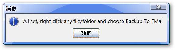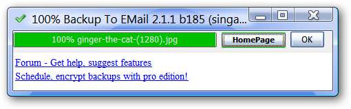 Dopo aver selezionato / cliccato su "Backup To EMail", vedrai una finestra di avanzamento come questa. Fare clic su "OK" al termine del caricamento per chiudere la finestra.