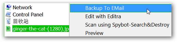 Per iniziare a eseguire il backup dei file, fare clic con il pulsante destro del mouse sul file e selezionare / fare clic su "Backup per posta elettronica".