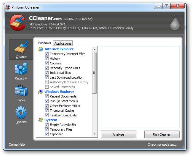 Sebbene la Pulizia disco sia un ottimo strumento per eliminare i file spazzatura, CCleaner ti offre più opzioni per pulire il tuo computer. L'impostazione predefinita di CCleaner ti consente di pulire i file spazzatura di IE, la cache di Windows Explorer e i dump di sistema.