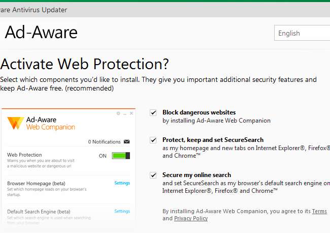 Ad-Aware di Lavasoft promuove la "Protezione Web" che "protegge la tua ricerca online" impostando SecureSearch come home page del tuo browser web e motore di ricerca predefinito. Nonostante il nome, questa non è in realtà una funzione di sicurezza. Invece, cambia semplicemente il tuo browser web per utilizzare un motore di ricerca di marca che utilizza effettivamente Yahoo! in background, significa che è alimentato da Bing.