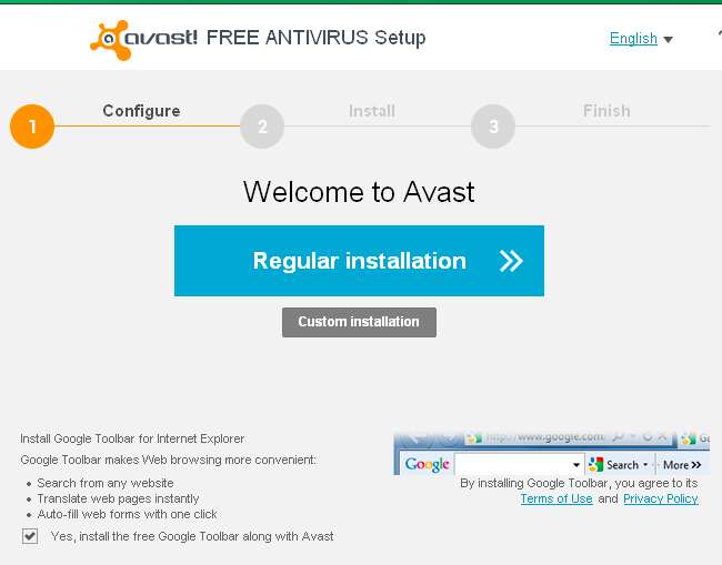 Il programma di installazione di avast! tenta anche di installare software aggiuntivo che potresti non volere. Abbiamo visto Dropbox offerto qui in passato, ma avast! ha tentato di installare Google Toolbar quando abbiamo provato a installarlo.