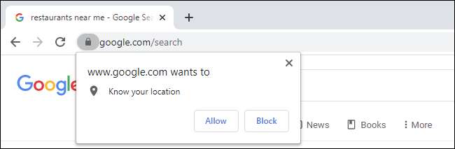 Vedrai anche un indicatore di platèkark nella barra degli indirizzi di Chrome quando un sito Web ha accesso alla tua posizione. Altri browser funzionano in modo simile, fornendo un'indicazione visiva che ciò si è verificato sulla pagina corrente.