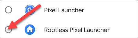 Avrai bisogno di creare launcher senza radicita l'app di casa "predefinita". Per fare questo, Apri le impostazioni e la ricerca per "home app". Seleziona "Launcher senza radici" dall'elenco.