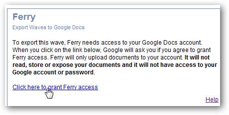 Uno dei modi migliori per esportare i tuoi dati da Wave è inviarli a Google Docs. Google Docs è già un'ottima piattaforma di collaborazione e puoi modificare in tempo reale i tuoi documenti con amici e colleghi in modo simile a Wave. Ecco come puoi farlo utilizzando il bot Ferry.