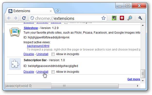 Se stai usando Firefox e vuoi sbarazzarti di questa barra, puoi usare uno script utente insieme al Greasemonkey estensione. Se utilizzi Google Chrome, il supporto per gli script utente è integrato e tutto ciò che devi fare è vai a questo script utente e fare clic sul pulsante Installa.