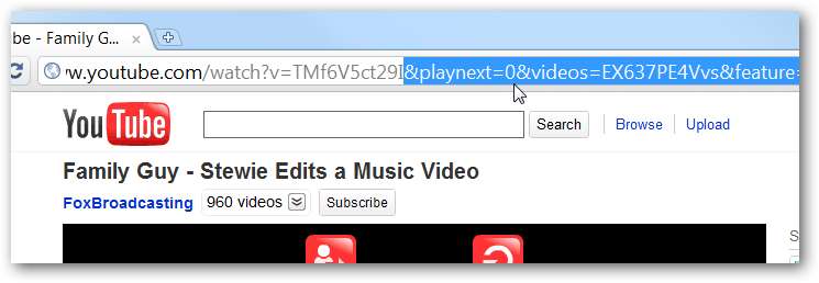 Evidenzia tutto da & playnext = fino alla fine dell'URL, premi il tasto Canc, quindi copia il resto.