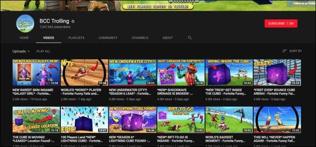 Il secondo canale ha un approccio leggermente più viscido. BCC Trolling , un canale "Momenti divertenti" di Fortnite, prende clip da streamer famosi e li modifica in video quotidiani. Nell'ultimo anno hanno imparato l'algoritmo e hanno raggiunto 7,3 milioni di abbonati. Per massimizzare il tempo di visualizzazione, hanno messo la clip del titolo del video da qualche parte nel mezzo del video, costringendo le persone a guardarlo per un po 'prima di arrivare al clip su cui hanno cliccato, essenzialmente facendole "agganciare" al video. Per questo motivo, il loro tempo di visualizzazione è maggiore.