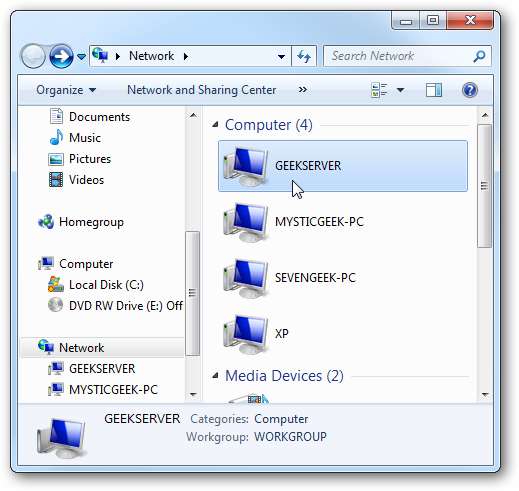 Puoi anche andare in Rete e fare doppio clic sull'icona Home Server ...