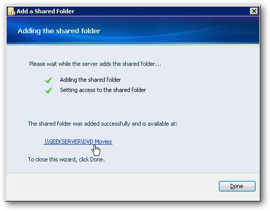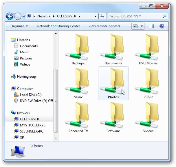 Puoi accedere alle tue cartelle condivise sul server in diversi modi. Uno è fare doppio clic sul file Cartelle condivise sul server icona che è stata creata sul desktop durante l'installazione della console WHS.