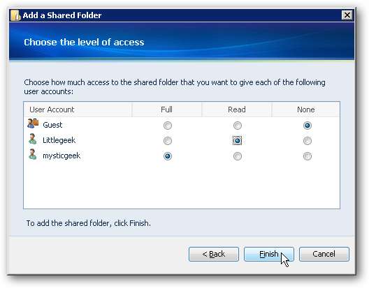 Successivamente dobbiamo selezionare il tipo di accesso che ogni utente avrà per la nuova cartella. I tipi di accesso sono i seguenti ...