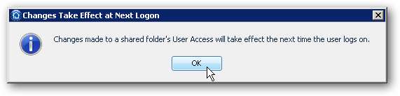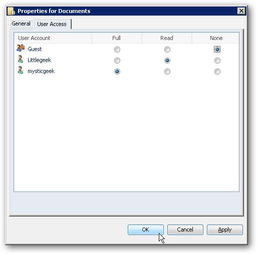 Fare clic sulla scheda Accesso utente per modificare il tipo di accesso di ciascun utente alla cartella.