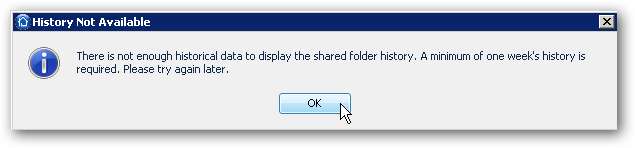 Se provi a visualizzare la cronologia di una cartella che non ha avuto abbastanza tempo per accumularne alcuna, otterrai il seguente errore. Una cartella deve essere in funzione per un minimo di una settimana.