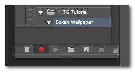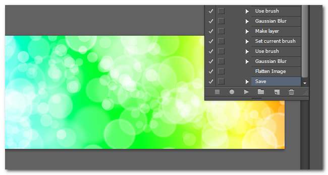 A questo punto, abbiamo registrato tutti i passaggi, dall'inizio alla fine, per creare uno sfondo bokeh. Ora possiamo fare clic su "Sfondo Bokeh" nel menu Azioni, sotto il set "Tutorial HTG" che abbiamo creato in precedenza, e premere play per creare un nuovo sfondo senza interazione. Questo è il completo Azione abbiamo parlato in precedenza nel tutorial e una forma di automazione una tantum.