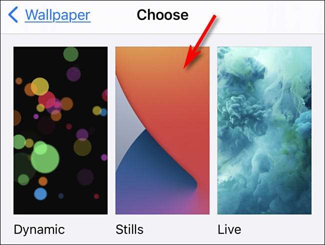 Nella categoria "Stills", selezionare uno sfondo che include l'icona della modalità scuro, che sembra diversi cerchi concentrici con metà tagliata da loro.