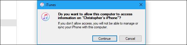 Dopo aver collegato il tuo iPhone, fai clic sul pulsante "Continua" in iTunes per consentire l'accesso al tuo iPhone sul tuo computer.
