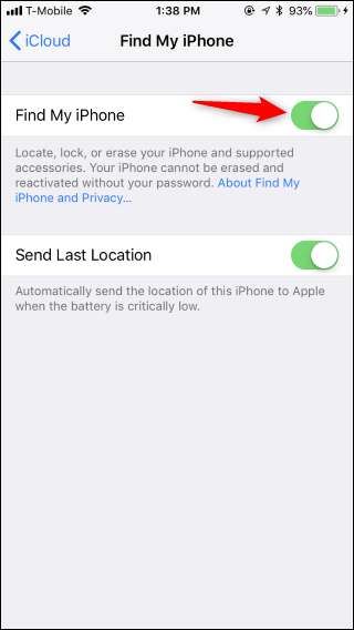 Per farlo, vai su Impostazioni sul tuo iPhone, quindi tocca il tuo nome nella parte superiore della schermata delle impostazioni. Da qui, tocca iCloud> Trova il mio iPhone. Tocca lo slider "Trova il mio iPhone", quindi inserisci la password dell'ID Apple per disattivarlo.