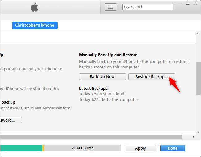 Come ripristinare un backup di iTunes