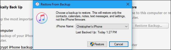 iTunes ti chiederà di scegliere quale backup desideri ripristinare. Per impostazione predefinita, seleziona il backup più recente. I backup più vecchi hanno informazioni sulla data nei loro nomi in modo da sapere quale è quale.