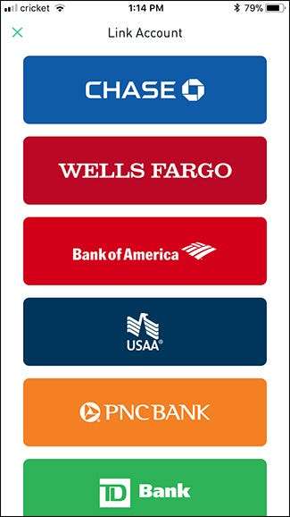 Quando hai effettuato l'accesso a Robinhood e sei pronto per iniziare, ti verrà prima chiesto di collegare un conto bancario. Tocca la tua banca se è elencata.