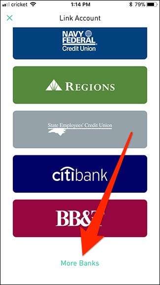 Se la tua banca non è elencata, tocca "Altre banche" in basso e digita il nome della tua banca.