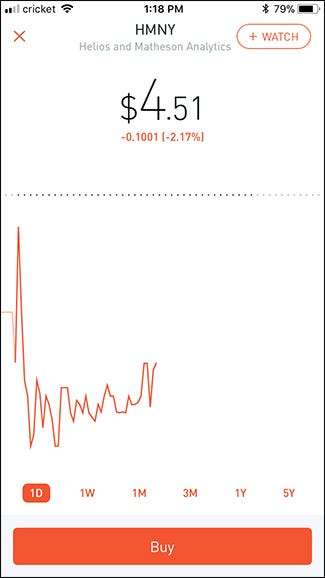 D'altra parte, la semplice interfaccia di Robinhood può essere considerata un po 'uno svantaggio, poiché l'app non include molto in termini di strumenti di analisi diversi da un semplice grafico a linee. Robinhood è inteso solo come una piattaforma per l'acquisto e la vendita di azioni, lasciandoti a te stesso per quanto riguarda la ricerca e l'analisi. Per fortuna, però, ci sono un sacco di grandi risorse disponibili là fuori.