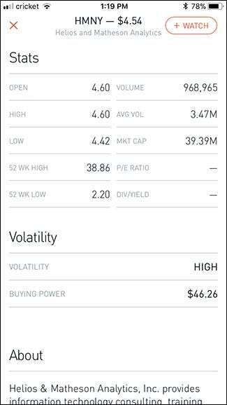 È possibile ottenere ulteriori informazioni sullo stock scorrendo verso il basso. Vedrai cose come notizie su azioni, volume di scambi, capitalizzazione di mercato, rapporto P / E e altro ancora.