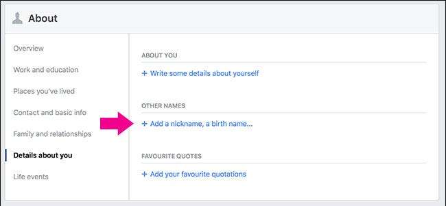 Fai clic su "Aggiungi un soprannome, un nome di nascita ..."