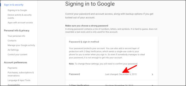 Scorri verso il basso fino a visualizzare la sezione Accesso a Google, quindi seleziona "Password".