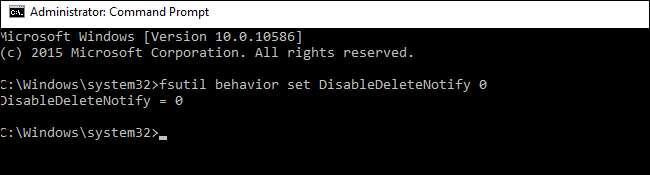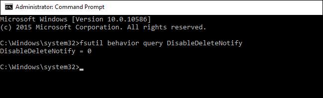 Il comportamento di fsutil imposta DisableDeleteNotify 0