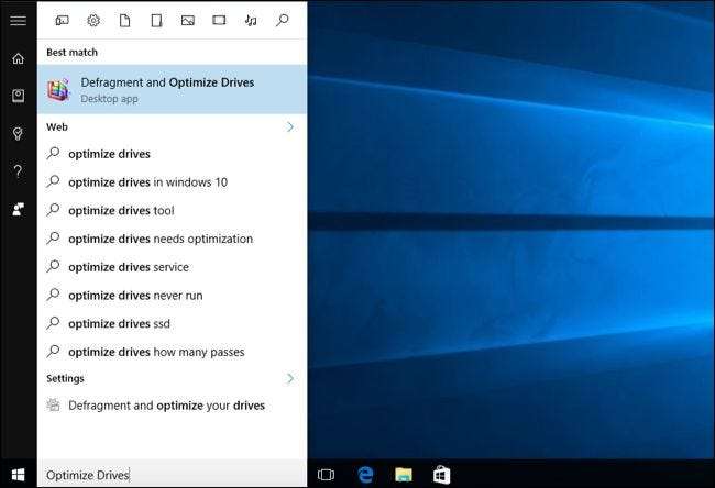 Per verificare che Windows stia eseguendo le ottimizzazioni di ritiro in base a una pianificazione, aprire l'applicazione Optimize Drives. Aprire il menu Start, cercare "Ottimizza unità" e fare clic sul collegamento "Deframmenta e ottimizza unità".