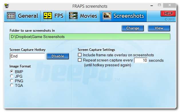 Vai avanti e utilizza una singola directory (come / Schermate di gioco /) per gli screenshot salvati poiché FRAPS aggiunge tutti i dati che crea (schermate, benchmark, ecc.) Con il nome dell'eseguibile del gioco. Tutte le immagini oi benchmark di simcity.exe, ad esempio, sarebbero in formato