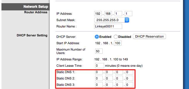 Non è un problema se hai configurato il tuo router per l'uso buoni server DNS alternativi - ad esempio 8.8.8.8 e 8.8.4.4 per Google DNS o 208.67.222.222 e 208.67.220.220 per OpenDNS. Tuttavia, se ci sono server DNS che non riconosci, è un segno che il malware ha cambiato il tuo router per utilizzare i server DNS. In caso di dubbio, esegui una ricerca sul Web per gli indirizzi del server DNS e verifica se sono legittimi o meno. Qualcosa come "0.0.0.0" va bene e spesso significa solo che il campo è vuoto e il router riceve automaticamente un server DNS.