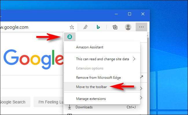 Se desideri riportare l'icona dell'estensione alla barra degli strumenti, fare clic con il pulsante destro del mouse sull'icona e selezionare "Sposta nella barra degli strumenti" nel menu visualizzato.