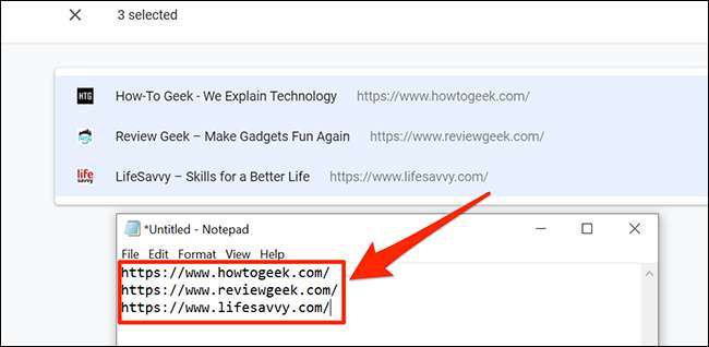 Ora, apri il programma in cui vuoi incollare tutti gli URL della scheda Apri (come Blocco note o TextEdit). Quindi, premere Ctrl + V su Windows e Linux o Comando + V su Mac per incollare tutti i tuoi URL come testo normale.