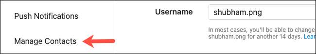 Dirigersi in "Gestisci contatti" dalla barra laterale.