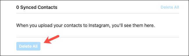 Fai clic sul pulsante "Elimina tutto" per eliminare i dati della rubrica da Instagram.