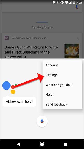 Per disattivarlo, apri l'Assistente Google sul telefono premendo a lungo il pulsante Home del telefono. Tocca l'icona del menu a destra, quindi tocca Impostazioni.