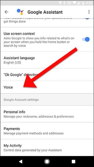 Scorri verso il basso e tocca Voce.