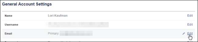 Nella pagina "Impostazioni generali account", fai clic sul link "Modifica" a destra di "Email".