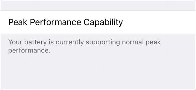 La seconda opzione, Peak Performance Capability, ti consente di sapere se il tuo dispositivo è interessato dalla "funzione" di rallentamento. Se la batteria attualmente segnala che "supporta le normali prestazioni di picco", il dispositivo non ha mai subito un arresto imprevisto, allora sei a posto, senza limitazioni. Sii felice, ma verrà un giorno in cui non lo sarai.
