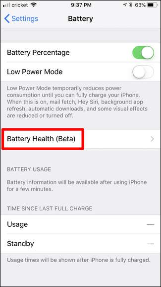 Se hai familiarità con questo menu, dovresti essere in grado di individuare la nuova opzione quasi immediatamente: Battery Health. Toccalo per vedere le tue opzioni qui.