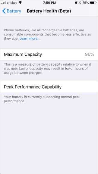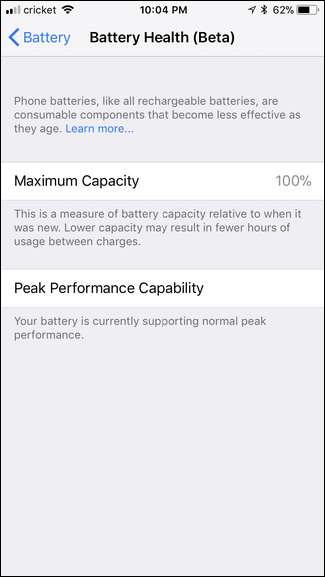 La nuova funzione, chiamata Battery Health, ti mostrerà due semplici cose: la capacità massima della batteria e la "capacità di prestazioni massime". Quest'ultimo è ciò che cercherai se sei preoccupato per il throttling della CPU.