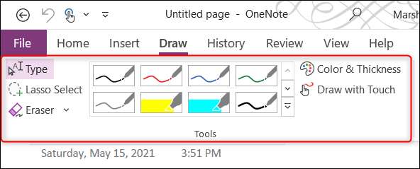 Per iniziare, lanciare Onenote e aprire il notebook che vorresti disegnare. Tutti gli strumenti che utilizzeremo per disegnare OneNote sono convenientemente situati nella scheda "Disegna", quindi vai avanti e fai clic su quella scheda per aprilo.