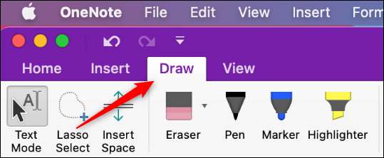 Per iniziare, avviare OneNote sul tuo Mac, apri il notebook che vuoi disegnare, quindi fare clic sulla scheda "Disegna".