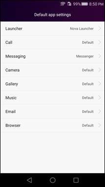 A questo punto, la maggior parte dei produttori di telefoni dovrebbe essere più o meno sulla stessa pagina. La maggior parte ti consentirà di modificare il launcher predefinito (Home), il browser, il dialer (telefono) e le app SMS, insieme ad alcuni dettagli che variano a seconda dei produttori.
