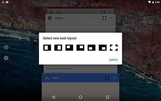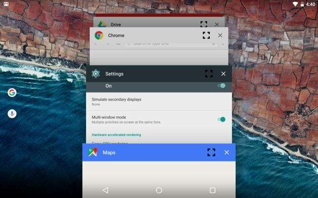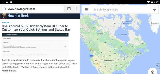 Android 6.0 Marshmallow contiene una modalità multi-finestra nascosta e altamente sperimentale. Forse questo sarà stabile nella prossima versione di Android - renderebbe sicuramente più utili i telefoni Pixel C, Nexus 9 e Nexus 6 di Google . Per ora, puoi abilitarlo se sei disposto a fare qualche modifica.