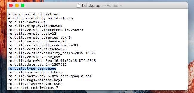Individua il campo "ro.build.type" e modifica il valore da "user" a "userdebug". Riavvia il dispositivo in seguito.