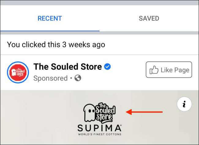 Da qui, sarai in grado di vedere un elenco inverso-cronologico di tutti gli annunci e i post sponsorizzati con cui hai interagito. Tocca un annuncio per aprirlo nel browser. Dal menu, puoi anche trovare la possibilità di nascondi l'annuncio in futuro .