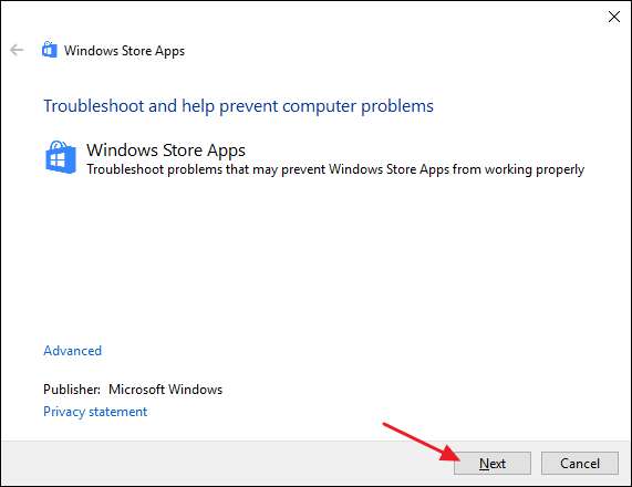 Dopo aver scaricato lo strumento di risoluzione dei problemi, fai doppio clic sul file per eseguirlo. Nella finestra della risoluzione dei problemi delle app di Windows Store, fare clic su Avanti per avviare la ricerca dei problemi.